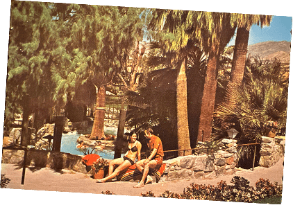 By the mid-20th century, Desert Hot Springs had established itself as a hub for wellness seekers, promising therapeutic mineral baths and dry desert air to Angelenos eager to escape city life. Two Bunch Palms quickly became a cornerstone of this scene, offering something other places couldn’t: seclusion. Guests came not to see or be seen but to disappear, retreating into the grotto’s steaming waters or the shade of its iconic palms. The resort became synonymous with anonymity, a place where the world’s demands stopped at the edge of the property.